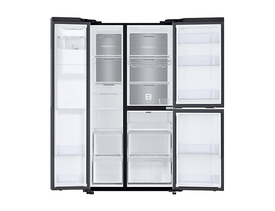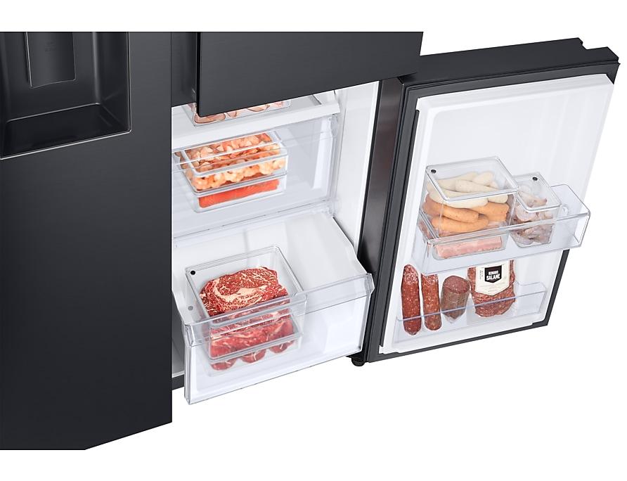 Store and organize your food more efficiently for the ultimate convenience. The 3-door, side-by-side (SBS) refrigerator has two fridges and one freezer. With its upper and lower fridge, it minimizes cool air loss by 55%, so you can save energy. And everything can be kept well organized.